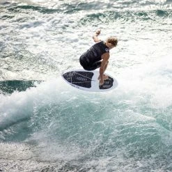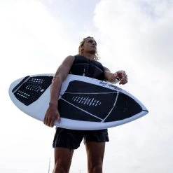 This shape comes with tail rocker for more control while in the forward position, and is less likely to dunk the nose while riding switch. A trimmed down version of our classic Carbon Air Core 3 Skimmer for the rider that believes less is more.