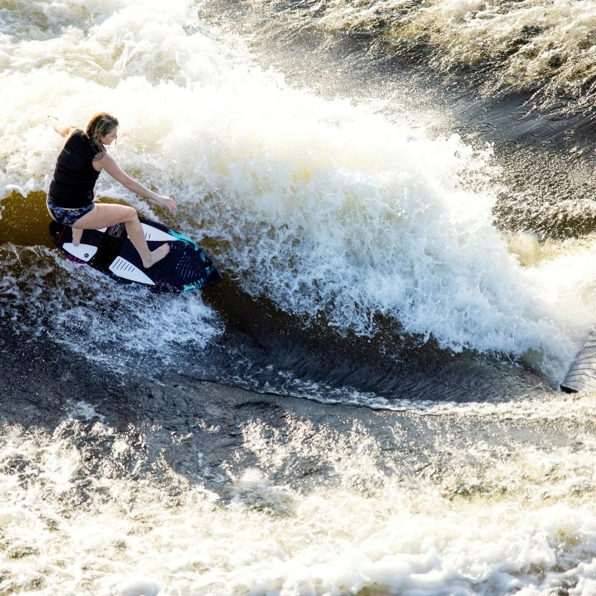 - The sharp side rail makes for more contact through the water giving you more push in the wave and a better ability to carve through the wave