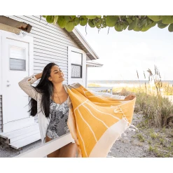 Machine wash on gentle or delicate, using cold water with like colors. Best practice is to hang dry. Tumble dry low is also acceptable. Do not use Bleach, Fabric Softeners, or Dryer Sheets. Gets softer and more absorbent with every wash!