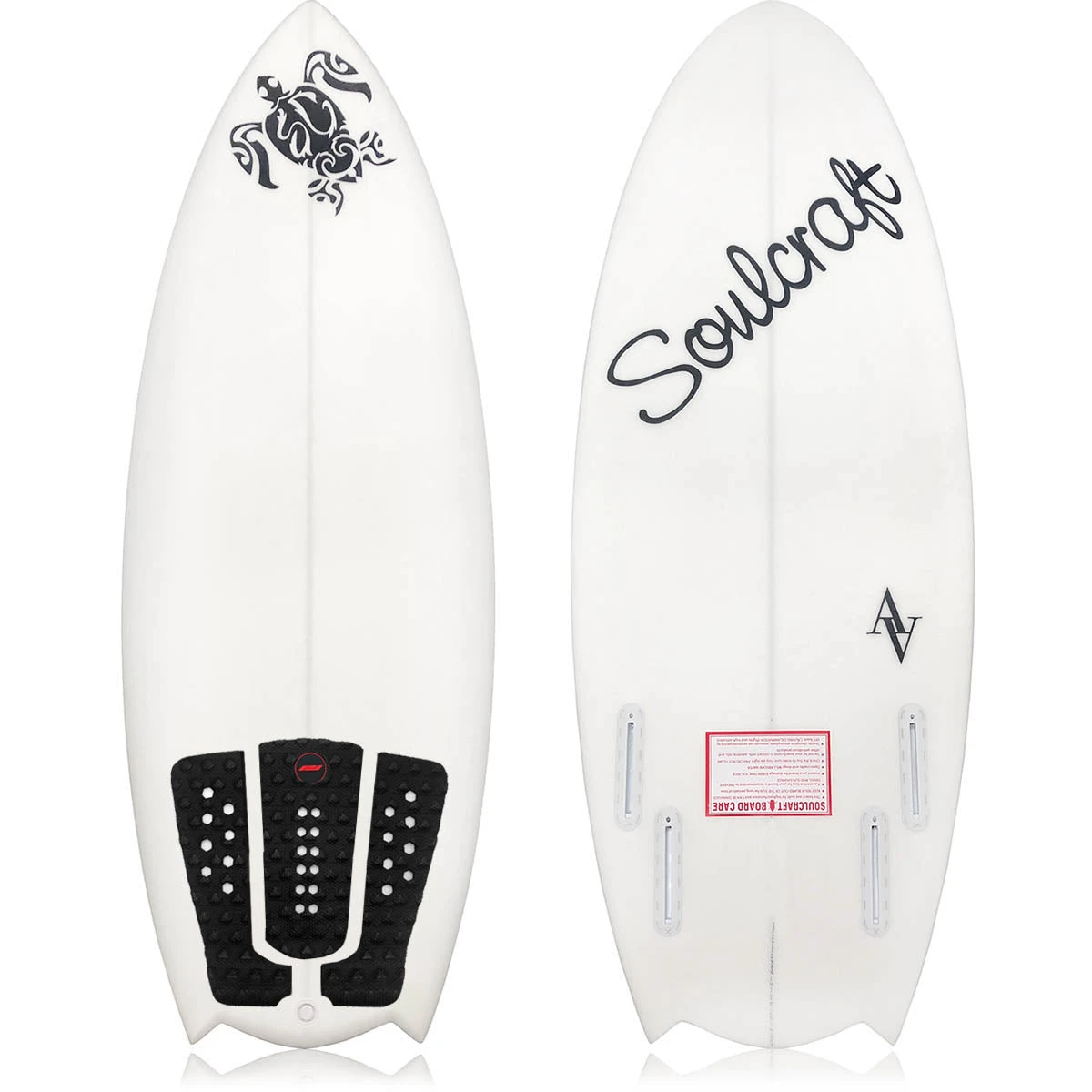 This board comes with 2 large fins, 2 small nub fins and front and rear traction pads.